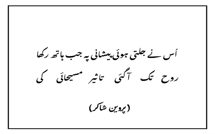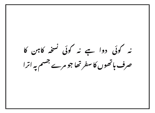 “When his hand touched my fevered brow, the grace of a healer’s touch flowed to my soul”. (Translation by Maryam Ali Khan)